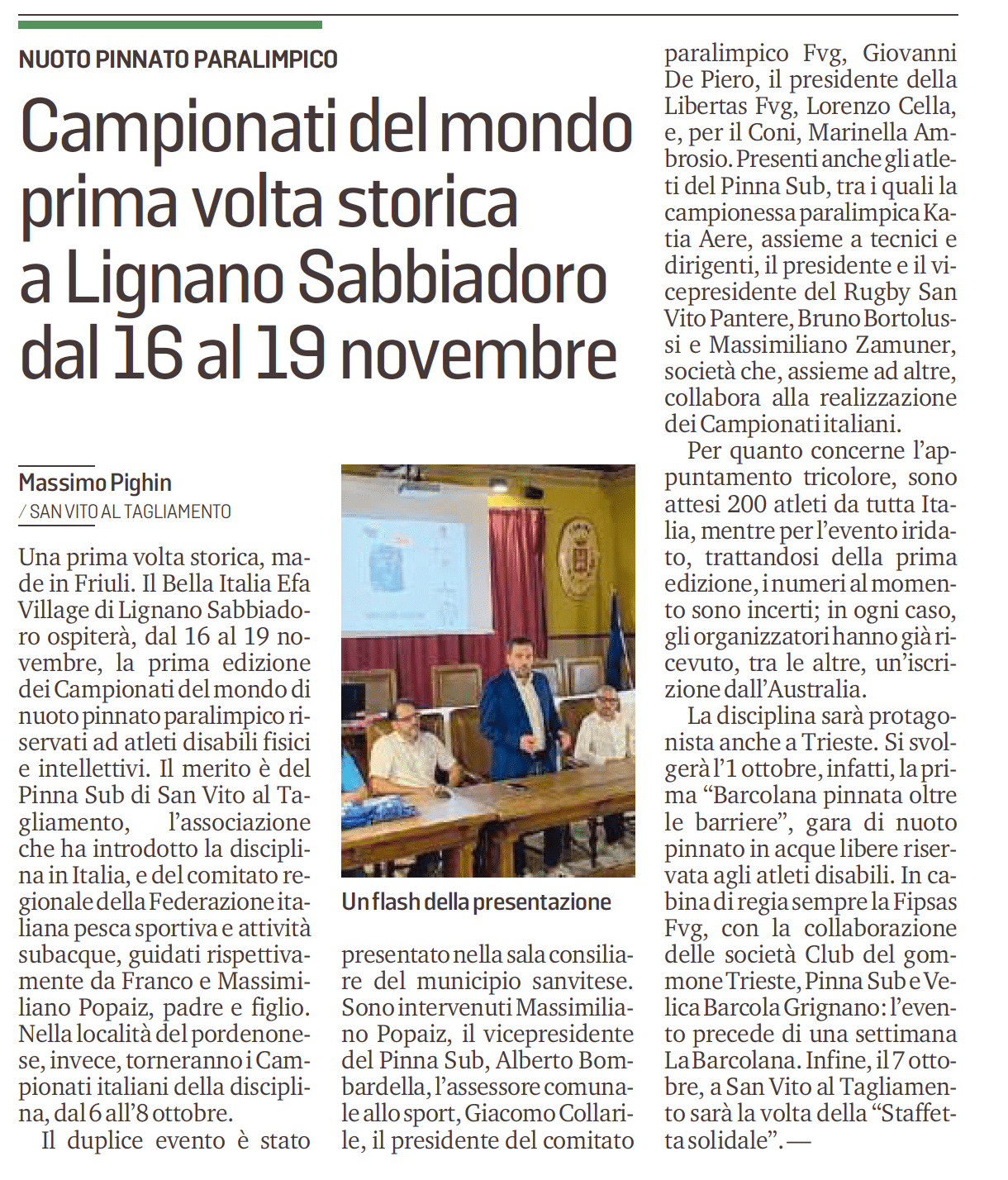 "Nuoto pinnato paralimpico a San Vito al Tagliamento"